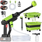 Hidrolimpiadora Bateria, 30 Bar Pistola de Agua a Presión con Cubo Plegable de 22L, 2 Baterías de 3,0 Ah, Boquilla 6 en 1, Hidrolimpiadora Portátil para Coche y Jardín